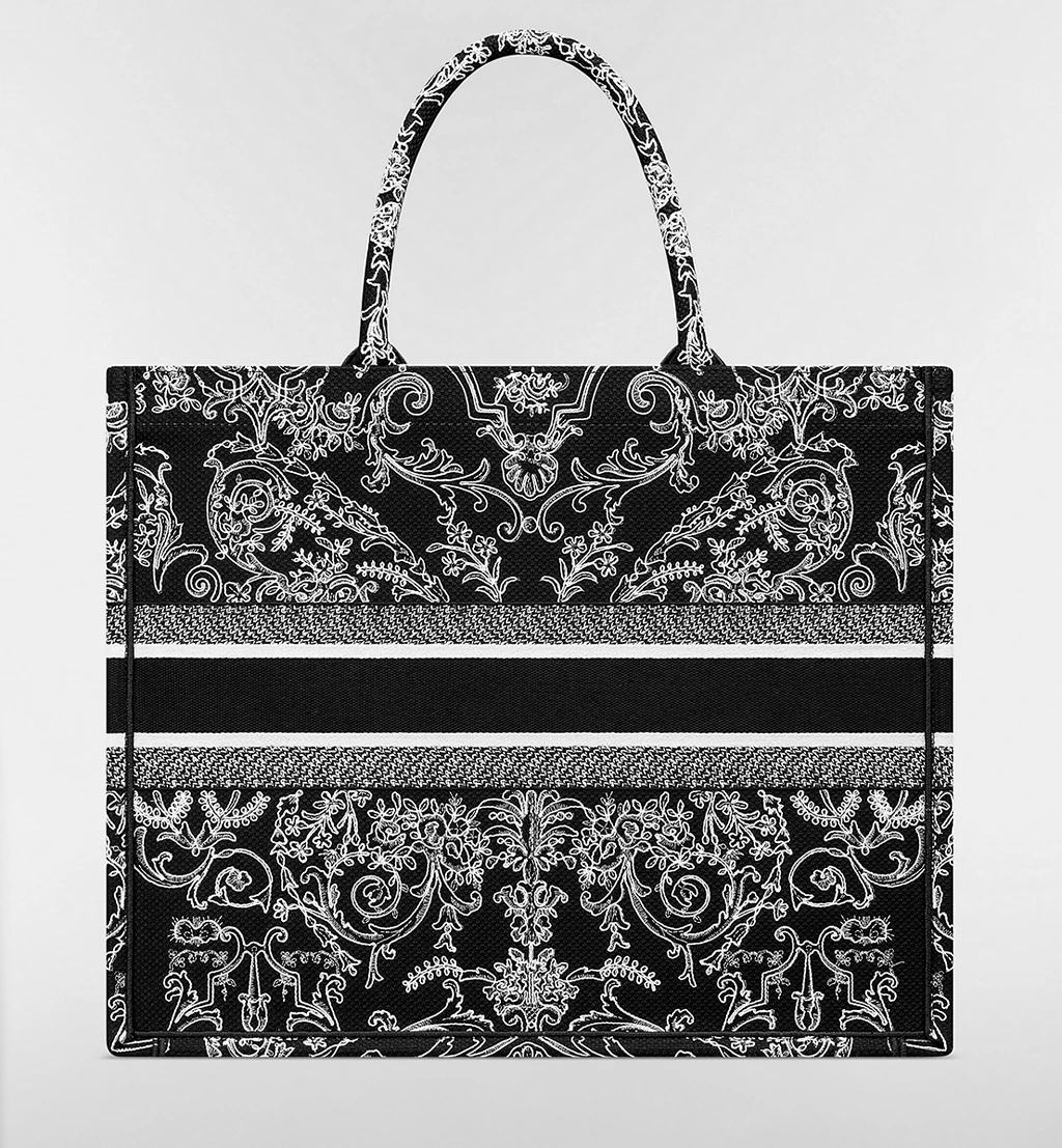The Dior Book Tote has become a timeless icon of the House. Designed to carry all daily essentials, this Large model is fully embroidered using the Cornely technique and features the Dioresque Butterfly motif in black and multicolor. The butterfly, an emblematic symbol of the House, is elegantly reimagined for a bold and refined statement.